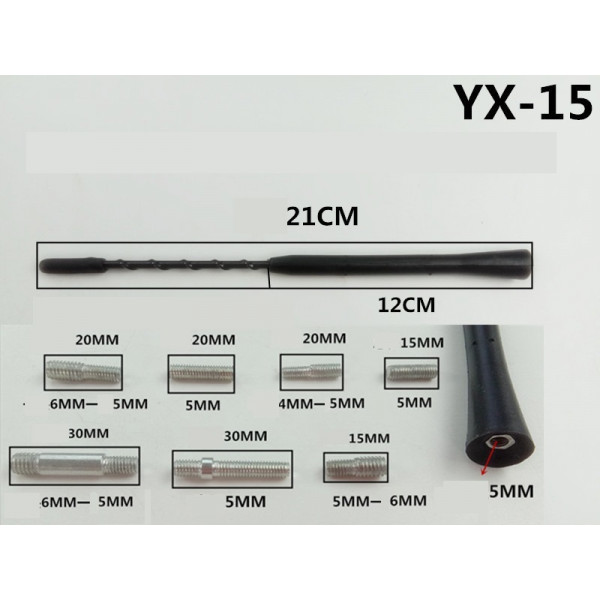 Антенний наконечник (витий) 5мм YX-15 адаптери M6-M6; M5-M6: M4-M5 (довжина 21см,12см)