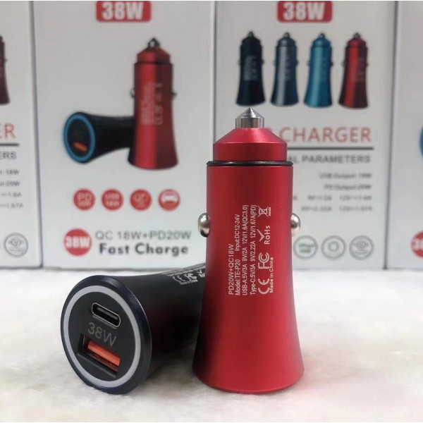 Характеристики: Автомобільний зарядний пристрій38 Вт PD20W QC3.0, надшвидка зарядка, зі світлодіодним підсвічуванням. Новий дизайн, інтерфейси QC3.0 PD20W з достатньою продуктивністю, безпечні та екологічні. Подвійний порт, інтерфейси USB-A+TYPE-C, що працюють одночасно, можуть використовувати кілька пристроїв одночасно. Металевий корпус, швидке тепловідведення, тривалий час зарядки без перегріву, безпечний при низьких температурах. Підходить для різних цифрових продуктів, таких як телефони, планшети, ноутбуки, камери, записи водіння, навігація. Технічні характеристики: Матеріал: пластик+метал Колір: білий, чорний (опціонально) Розмір: приблизно 7x2,5x3,6 см/2,75x0,98x1,41 дюйма Порт: 2 порти Потужність: 38 Вт загальна Вхід: DC12V-24V, підходить для всіх моделей автомобілів ,наприклад, автомобіль, вантажівка, автобус Вихід:USB1: PD20W DC5V-3A 9V-2.25A 12V-1.67AUSB2: QC3.0 DC5V-3A 9V-2A 12V-1.5A