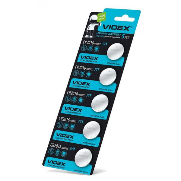 Батарейка CR2016 3V 2x1.6 "VIDEX" (1блістер-5шт)