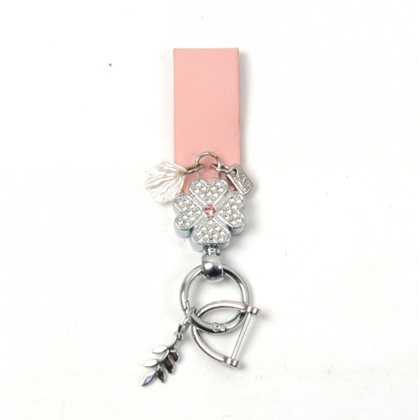 Брелок на ключі шкіряний Клевер (пакет+ викрутка) Рожевий