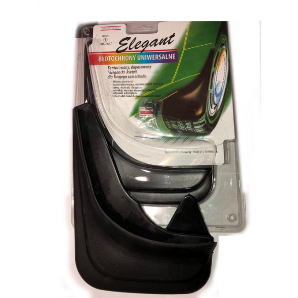Бризковики універсальні "Elegant" №1-перед (комплект - 2 шт.) Бризковики входять до обов'язкових елементів, які повинні бути встановлені на автомобілі. Бризковики - деталь автомобіля, що створює захист днища від попадання бризок, снігу, дрібної щебінки (піску) та іншого дорожнього мусора з-під коліс. Особливо важливу функціональну роль виконують в осінньо-зимовий період, коли бруд з-під коліс упереміш з різними хімічними реагентами здатний дуже щільним шаром налипати на днище, тим самим провокуючи розвиток вогнищ корозії. Ця модель є універсальною і може встановлюватися практично на всі моделі легкових автомобілів вітчизняного та зарубіжного виробництва, маючи при цьому найпростішу конструкцію кріплення. Бризковики Elegant еластичні, легко згинаються, і не відламуються (кришаться) при деформації, що є перевагою перед більшістю оригінальних моделей. Щільно огинають практично будь крила та бампера автомобілів. При необхідності, можливо, легко скоректувати форму та розміри вручну. Мають великий термін експлуатації. Розміри: Ширина - 21см. Висота (повна) - 29 см. Висота (бризкової частини) - 6,5 см.