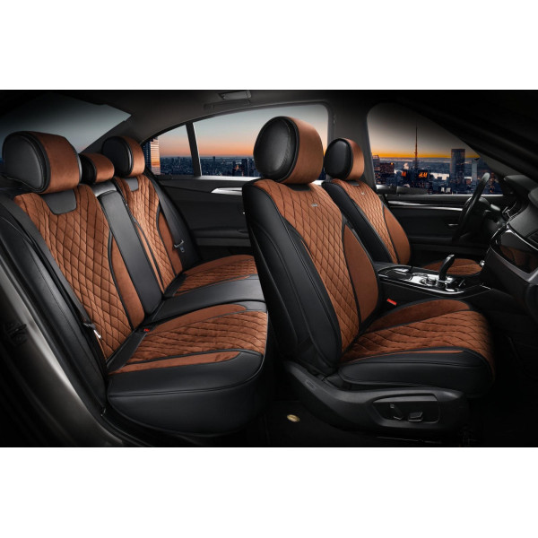 Чохли - Накидки сидіння Алькантара + Шкір. зам 3D "TORINO"(спинка відкрита) Кавові Elegant- 700 125