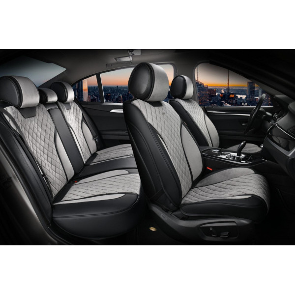 Комплект универсальных накидок на сидения автомобиля Elegant премиум класса Изготовлены накидки из экологического высококачественного автомобильного велюра. Благодаря изысканному дизайну накидок вы за минуту поменяете ваш салон в незабываемый вид. Накидки очень легко и быстро крепятся, и вам не понадобится помощи в установке. Накидки Elegant прекрасно сочетаются как с кожаным салоном, так и с тканевым. У вас есть возможность выбрать любой цвет, который вам максимально подойдет. Накидки на передние и задние сиденья закрывают спинку и сиденья плюс подголовник. Это защитит ваш салон от загрязнений и потертости. А так же можно использовать в автомобилях с подушками безопасности. Преимущества накидок на сидения Elegant Материалы премиум качества. Структура накидок имеет три слоя: верхняя часть мягкий велюр премиум класса; нижняя часть - прочная подкладка, нанесенная силиконовое противоскользящее покрытие; центральная часть 8мм подкладка. Края накидок окантованные автомобильной экокожей. Комфорт. Верхняя часть накидок мягкая приятная на ощупь. Можно использовать как зимой так и летом. Летом ткань дышит и не парит. Зимой благодаря специальной структуры очень приятно сидеть при любой температуре. Универсальность. Накидки на сиденья Elegant пошиты таким образом, что идеально подходят на любые формы сиденья, очень просто устанавливаются за несколько минут не приклада усилий. Накидки на сиденья авто Elegant Torino польского производства, помогут сохранить родную обивку кресел от многочисленных угроз. Красивый, ухоженный салон авто позволит установить высокую цену на автомобиль при дальнейшей его перепродаже. Ну а продать авто с грязными и порванными сидениями будет не так-то просто.Накидки принесут пользу не только при будущей продаже авто. С ними вы получите свежий, стильный салон автомобиля, в который приятно впустить пассажиров. Кроме того, накидки значительно упрощают процесс уборки, ведь при необходимости их можно быстро снять и почистить. Особенности накидок на сидения авто Elegant Накидки на сидения автомобиля могут похвастаться превосходными эксплуатационными характеристиками. Высоких показателей удалось добиться благодаря комбинации материалов экокожа и имитации алькантары. Первый из указанных материалов использован для каркаса накидок, а из имитации алькантары изготовлены центральные вставки.Благодаря комбинированному материалу, накидки на автомобильные сидения Elegant обладают следующими преимуществами: Поверхность аксессуаров долгое время останется в идеальном состоянии при периодической чистке. Накидка надежно защитит оригинальную обивку сидений от пролитых жидкостей и пищи, когтей животных и детских забав. Экокожаный каркас прочный и хорошо держит свою форму, поэтому на накидках не появится провисаний и растяжек. Full 3D конструкция чехлов гарантирует, что они идеально подойдут под любые сидения легковых автомобилей. Вы сможете установить комплект накидок всего за пару минут. При правильном выполнении процедуры накидки будут неподвижно зафиксированы на креслах. Чехлы и накидки Elegant имеют стильный, современный дизайн, а имитация алькантары поможет салону автомобиля выглядеть дороже. Комплект накидок на сиденья : Материал: Алькантара искуственная/Экокожа Каркас: Экокожа Центральные вставки: Алькантара искусственная