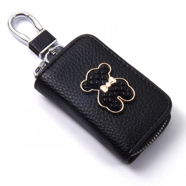 Чохол для ключів з карабіном Мішка Тедді Чорний (Ромби)