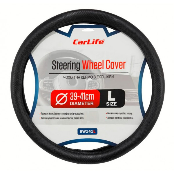 Чохол на кермо "L" (39-41см) чорний Екошкіра один шов перфорорований Carlife SW141L