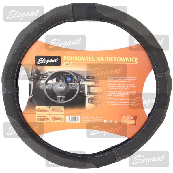 Чохол на кермо "M" (37-38см) чорний/сірий Elegant 105420