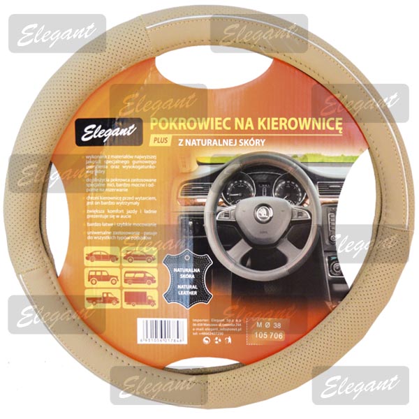 Чохол на кермо шкіра "М" (37-38см) бежевий Elegant 105706 перфорація (25шт/ящ)