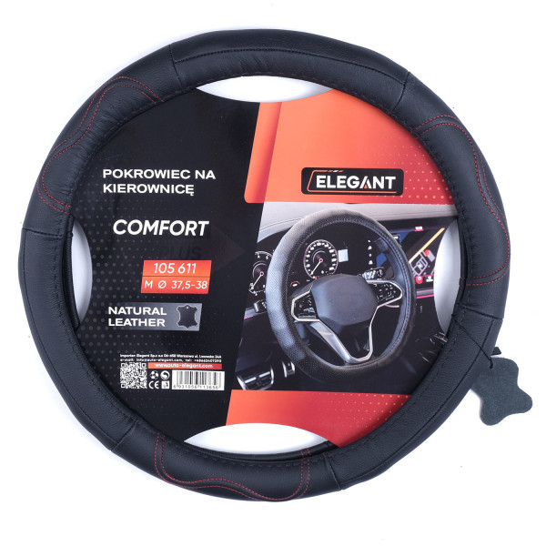 Чохол на кермо шкіра "М" (37-38см) чорний Elegant 105611 масаж, прошита червоною ниткою
