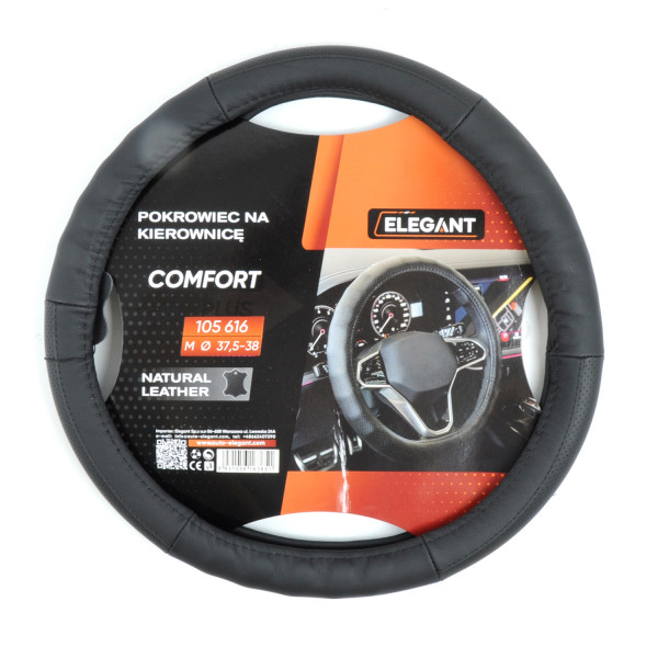 Чохол на кермо шкіра "М" (37-38см) чорний Elegant 105616 масаж,перфорація