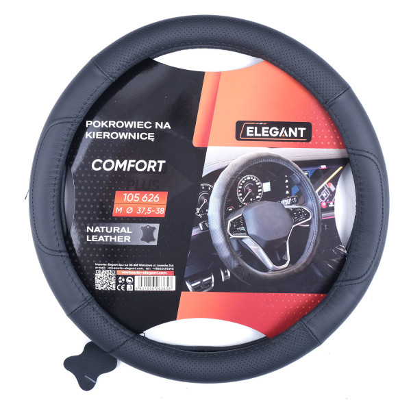 Чохол на кермо шкіра "М" (37-38см) чорний Elegant 105626 чорна Шкіра/вставки перфорація