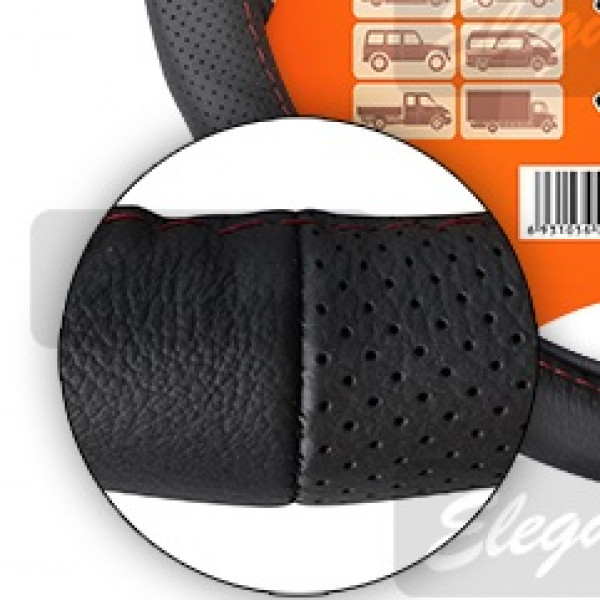 Чохол на кермо шкіра "М" (37-38см) чорний Elegant 105646 масаж, перф, прошита червоною ниткою