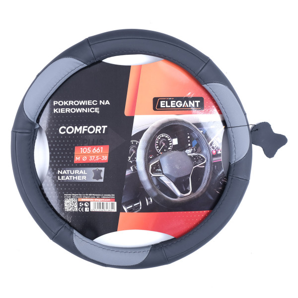 Чохол на кермо шкіра "М" (37-38см) чорний/сірий Elegant 105661 (30шт/ящ)