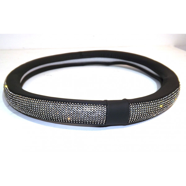 Чохол на кермо шкіра "M" (37-39см) чорний Стрази Чорні