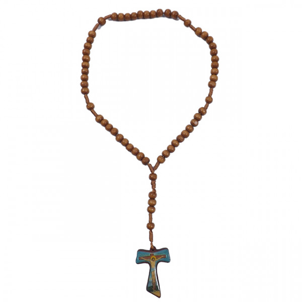 Чотки на 53 намистини дерев'яні світлі з хрестиком (розм.30см довжин.чоток,/0,9см)