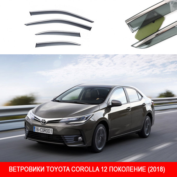 Дефлектори вікон Toyota Corolla 12 покоління 2019- скотч"FLY""нерж.сталь 3D"BTYCL1923-W/S(120)