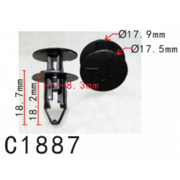 Фіксатор C1887 натискна/розпірна RENAULT, NISSAN, VAZ-LADA, DACIA, FORD (054000001R, 11765) ( уп100
