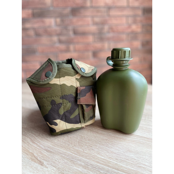 Фляга армійська в чохлі пластикова 1 Л (Камуфляж зелений №3)