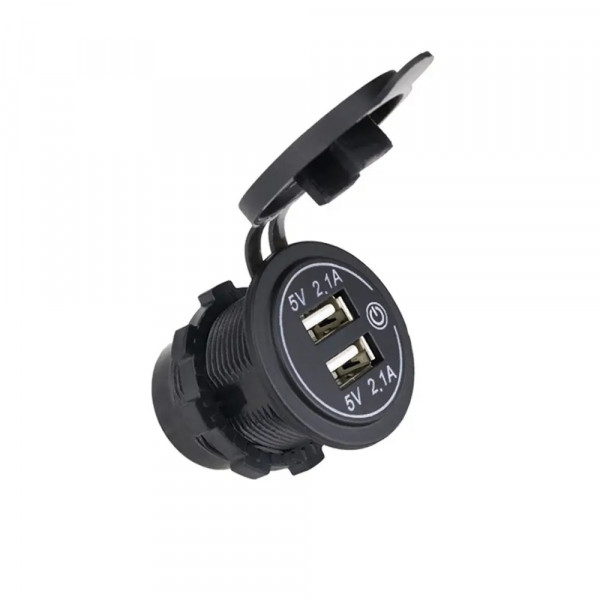USB розетка A41R автомобільна кругла врізна із сенсорною кнопкою ON-OFF. Підходить для автомобілів 12В та 24В. Червоне підсвічування.