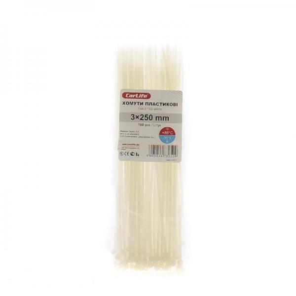 Хомут пласт.білий 250*3,0 "Carlife" (100шт)