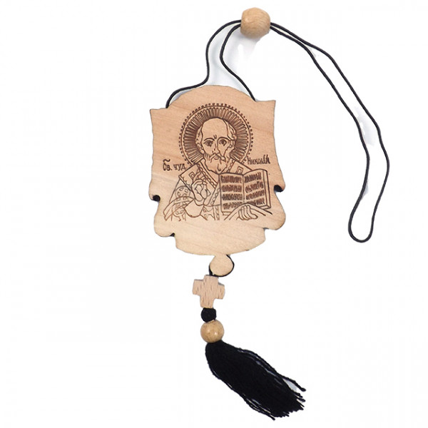 Ікона оберіг на нитці на дзеркало заднього виду дерево Матір Божа + Миколай Чудотворець (7х5см)
