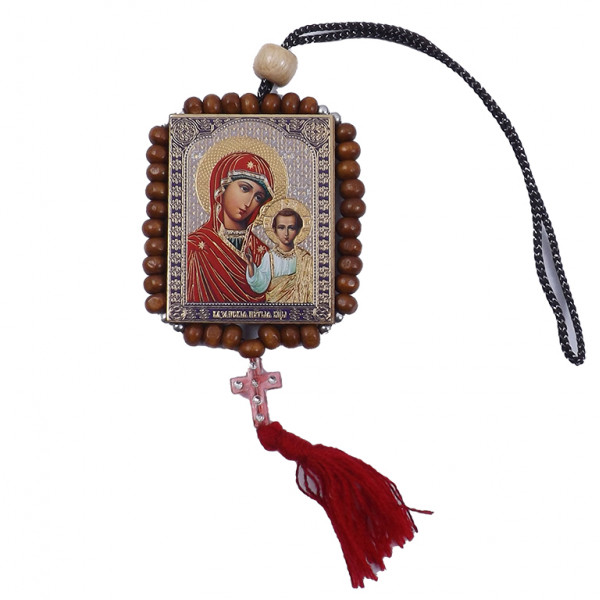 Ікона оберіг на нитці на дзеркало заднього виду з чотками образ з 2-х сторін дерево(4х5,5см)