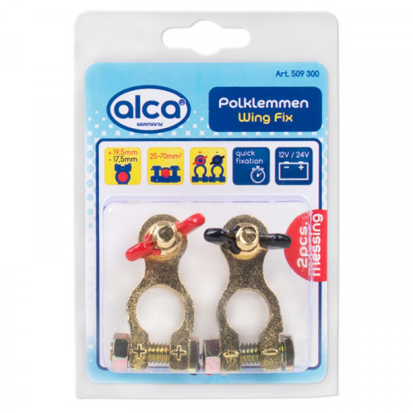 Клеми акумуляторні латунь 2шт "Alca" кольорові Wing Fix 509300 прямі