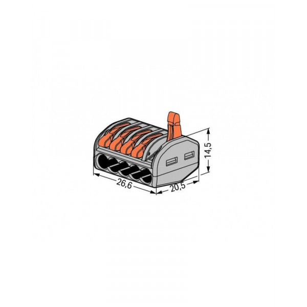 Бесперебойный электромонтаж гарантируется с помощью соединительного разъема с рычагами (артикул 222-415). От подключения систем внутренней связи до установки электрических духовок – соединение различных типов проводников выполняется быстро и без проблем с помощью компактного соединительного разъема серии 222 от WAGO, который позволяет быстро и безопасно соединять проводники разных типов. Номинальный ток и напряжение являются ключевыми факторами, которые следует учитывать при выборе соединительного разъема, поскольку они определяют пригодность изделия для различных областей применения. Номинальное напряжение данного изделия составляет 400V, а номинальный ток – 32А, что делает его пригодным для областей применения с высокой нагрузкой. Провода можно подключать к соединительному разъему с рычагами только при длине зачистки от 9 до 10 мм. Изделие оснащено клеммами для проводников и использует зажим CAGE CLAMP®. Наше соединение CAGE CLAMP® обеспечивает безопасное и не требующее обслуживания соединение всех типов проводников. Вам не нужно каким-либо образом подготавливать проводник, например, обжимать наконечники. Размеры: 26,6x14,5 x20,5 мм (ширина*высота*глубина). Соединитель с рычагами подходит для проводов сечением от 0,08 мм² до 2,5 мм².
