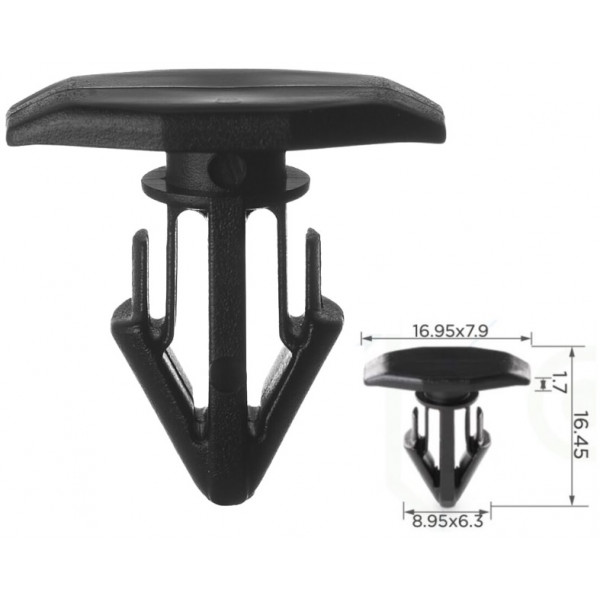 Клипса уплотнителя Lexus Toyota 9046710146 T=16.9, F=9.0, H=16.5, D=7.9 Для моделей: Lexus GS GS300 LS400 RX300 (1998 - 2003) Mitsubishi ASX (2010 - 2014) Colt (2002 - 2011) Delica (2006 - 2012) Eclipse (2005 - 2012) Galant (1998 - 2010) Grandis (2003 - 2013) L200 (2005 - 2014) Lancer (2000 - 2018) Mirage (2012 - 2018) Nativa (2008 - 2015) Outlander (2002 - 2018) Pajero (2008 - 2014) Pajero Sport (2008 - 2014) Toyota