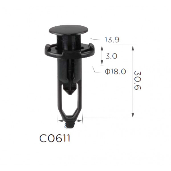 Кліпси C0611 розпірні Toyota Lexus 5216116010 5216102020 5216144010O 521610K040 (уп.100шт)