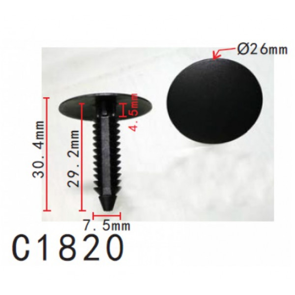 Кліпси C1820 обшивки капоту/ салону/крило W, SKODA, SEAT,AUDI,RENAULT,JEEP,FORD,CHRYSLER (уп.100шт)