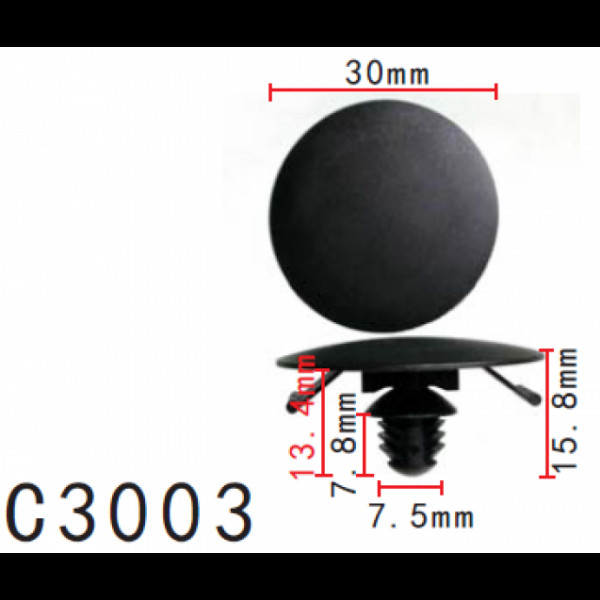 T = 30.0, H = 15.8, F = 7.5 Застосування: Кріплення обшивки підлоги багажника Для моделей: Nissan багато моделей Renault Megane (2002 - 2018) Renault Espace (2002 - 2014) Renault Scenic (2003 - 2009) Renault Trafic (2001 - 2014) Renault Laguna (2008 - 2015) Renault Latitude (2010 - 2015) Renault Logan
