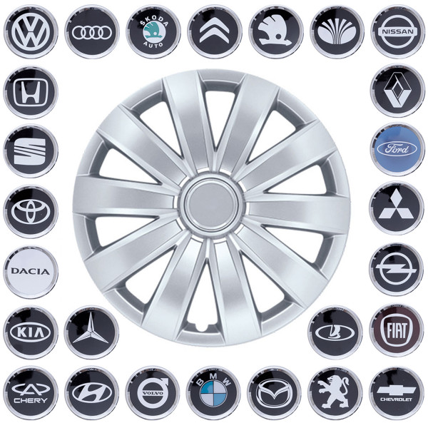 В комплект входит 4 колпака и эмблемы вашего автомобиля. Эмблема надёжно крепится хромированным кольцом в центральной части колпака. Комплект колесных колпаков предназначен для установки на диски. Сделаны из высококачественного пластика. Колпаки на колеса авто предназначены для защиты колес и как декоративный элемент колес. Функция защиты колес необходима зимой, потому что колпаки смогут защитить колеса от снега, слякоти, соли и других сопутствующих этому периоду смесей. Можно купить колесный колпак вместе с эмблемой Вашего авто. Эмблема не клеится на колпак, а крепится к нему хромированной пластиной.
