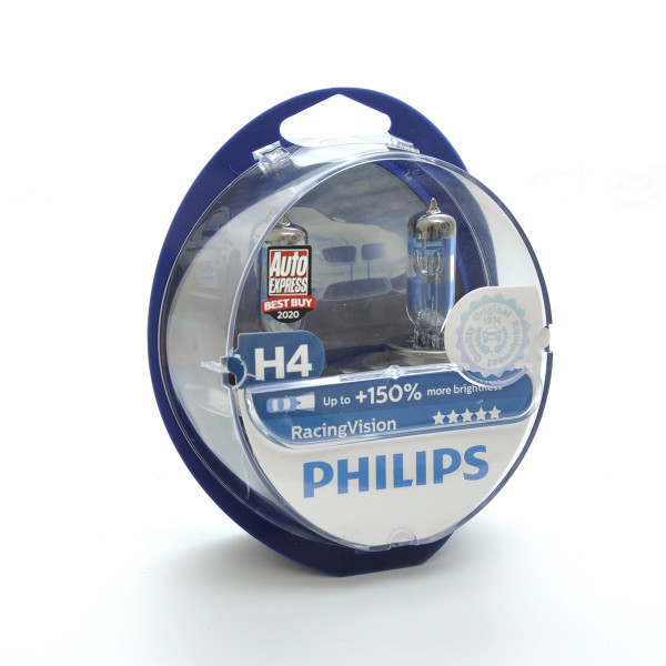 Лампа 12V H4 60/55W +150% Racing Vision "Philips" (Box-2шт) (12342RVS2) Акція