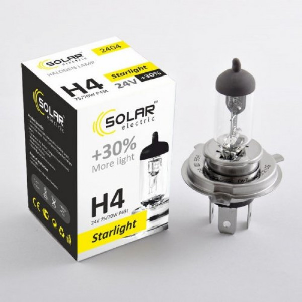 Лампа 24V H4 100/90W +30% P43 Starlight "Solar" (1шт) (2414) (10шт/уп)
