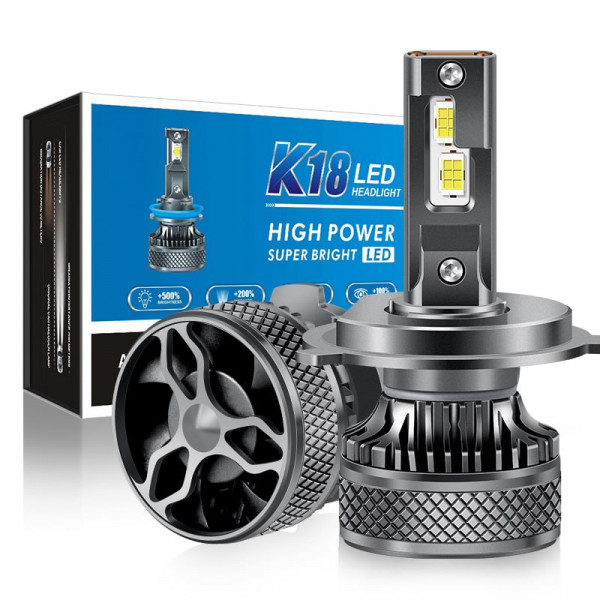 Світлодіодні LED лампи K18 H4 130W 19200Lm 6000-6500K CANBUS LED 3570 чіпи останнього покоління спеціально розроблені для використання у світлодіодних лампах головного світла; Освітлення +400% (в порівнянні з галогеновими лампами); Широкий та щільний світловий потік 6000К як в рефлекторній, так і в лінзованій оптиці; Стартова потужність 75 Вт, робоча 65 Вт; Високоефективна система охолодження з використанням 2х теплових трубок,мідної пластини,вентилятора та радіатора; Зовнішній драйвер виконано в металевому корпусі; Вбудований модуль СANBUS для обходу помилки бортового комп'ютера; Модуль EMC - відсутність електромагнітних поміх; Інтелектуальна система термоконтроля; Розширений температурний режим роботи від -40 до + 95 С; Номінальна напруга 9-36 В. Комплект: 2 штуки