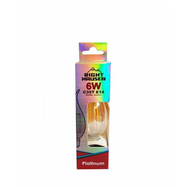 Лампа RIGHT HAUSEN LED Platinum Filament СВЕЧА НА ВЕТРУ 6W E14 4000K золотая C35T HN-264031 NEW