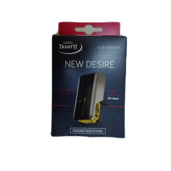 Ароматизатор TASOTTI New Desire на решітку вентиляції - дефлектор. Комплектується універсальною кліпсою, яка дозволяє надійно закріпити освіжувач повітря на дефлектор будь-якого автомобіля. Під впливом повітря, що виходить з решітки повітря, освіжувач TASOTTI New Desire рівномірно розподіляє приємний аромат по всьому салону автомобіля, гарантуючи вищий ступінь комфорту як водію, так і пасажирам навіть у найдовших і скрутних поїздках. Ароматизатор TASOTTI New Desire має здатність нейтралізувати сторонні та неприємні запахи, включаючи запах поту, вихлопних газів, домашніх тварин та багато інших. Особлива мембранна система забезпечує рівномірне дозування ароматичної рідини і запобігає її протоці навіть під час руху по пересіченій місцевості.