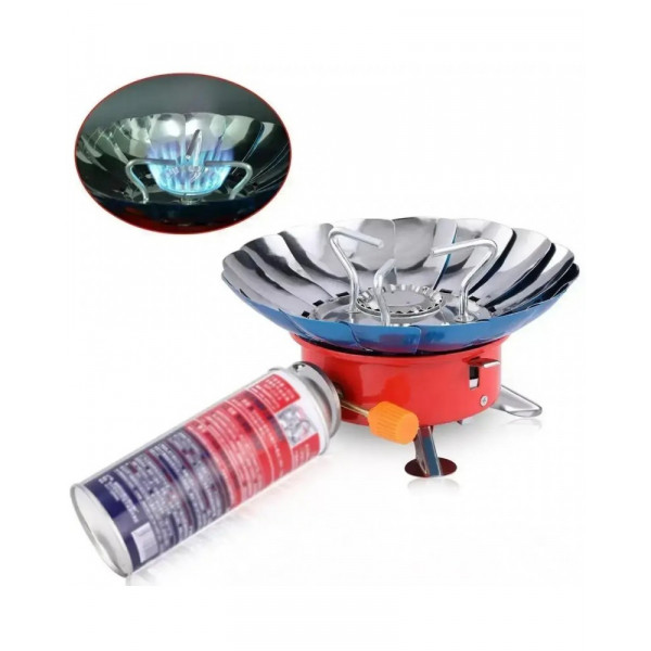 Газовая плита применяется для термической обработки пищи или кипячения воды в походе, на пикнике или на даче. Регулируемые металлические лепестки вокруг горелки оберегают пламя от ветра или сквозняка, что очень удобно при использовании ее на природе.