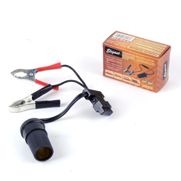 Перехідник клем прикурка+запобіжник (15А) "Elegant" 101511 12/24V Використовується для підключення безпосередньо від АКБ різних приладів та аксесуарів, що підключаються до прикурювача. Напруга: 12/24 v Сила струму: 15 а Довжина кабеля: 0,3 м