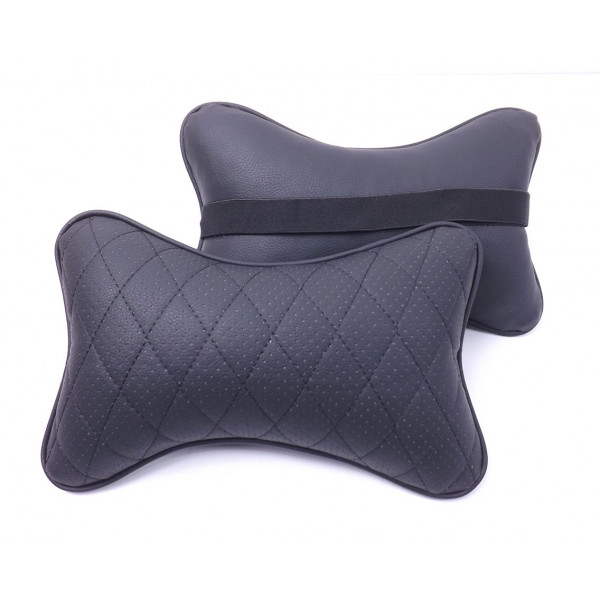 Подушка на підголівник еко-шкіра чорна + Ромб (Мелкий) чорний + кант (2шт/к-кт)