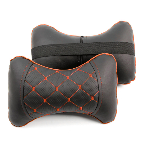 Подушка на підголівник еко-шкіра чорна + вставка перфор./рядок Ромб червоний + кант (2шт/к-кт)