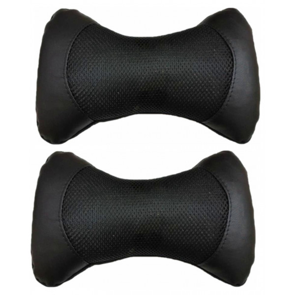 Подушка на підголівник еко-шкіра чорна + вставка сітка чорна + чорний кант (2шт/к-кт)