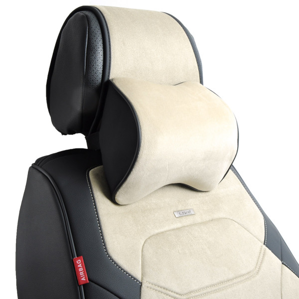 Подушка на підголівник з ефектом Пам'яті Алькантара+еко-шкіра Бежева (2шт/к-кт) "Elegant"- 700 504
