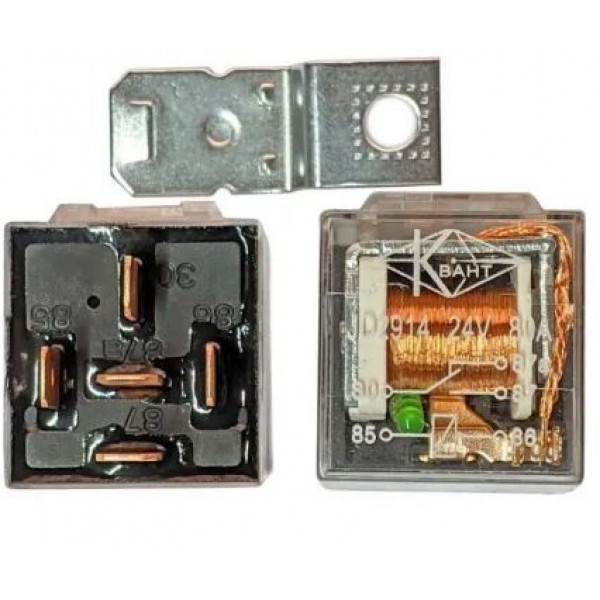 Реле 24V 5-ти контактне 80А з індикатором КВАНТ (прозорий корпус)
