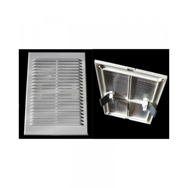 долговечность эксплуатации, ударопрочность, стойкость к температурным изменениям, легкость мытья, наличие защитной сетки от насекомых, простой монтаж. Решетка устанавливается при помощи дюбелей или силикона. Наличие распорных лап позволяет надежно закрепить решетку в вентиляционный канал без сверления отверстий. Материал решетки: полистирол.