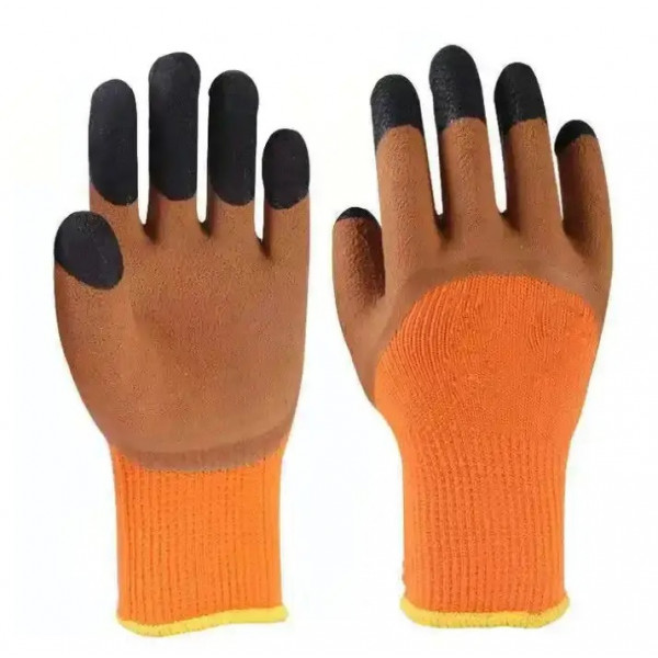 Рукавички робочі теплі покриті спіненим з подвійною обливою на пальцях латексом #300 (Помаранчеві)