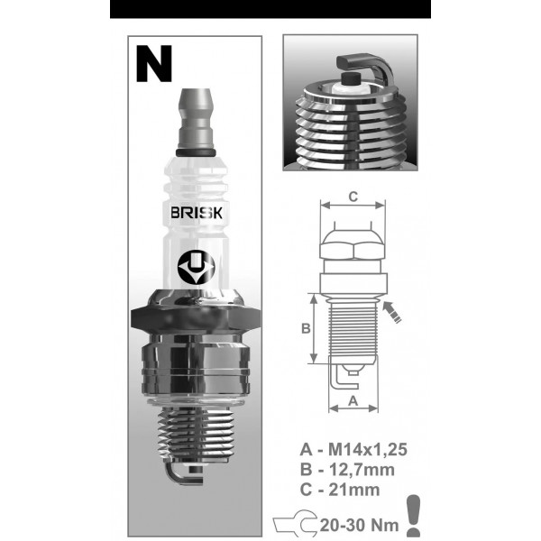 Свічки - "Brisk" - N19.4B Classic Зазор-0.7мм, ключ-21 (УАЗ) M 14x1,25 (1324)
