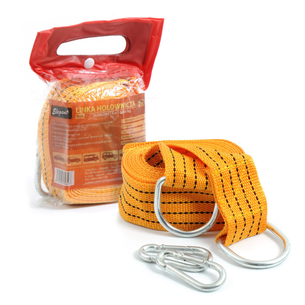 Трос буксирувальний 2,0т 4,0м 47мм/карабіни/помаранч./Пакет-РЕ "ELEGANT" 101830