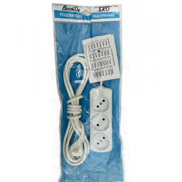 Удлинитель изготовлен из высококачественных материалов украинского производства. Медный кабель с сечением 1 мм кв. Максимальная длительная нагрузка – 1,5 кВт. Колодка – 10 Ампер, с латунными контактами. Качественная упаковка. Приятная цена. Это лучший выбор из бюджетных удлинителей.