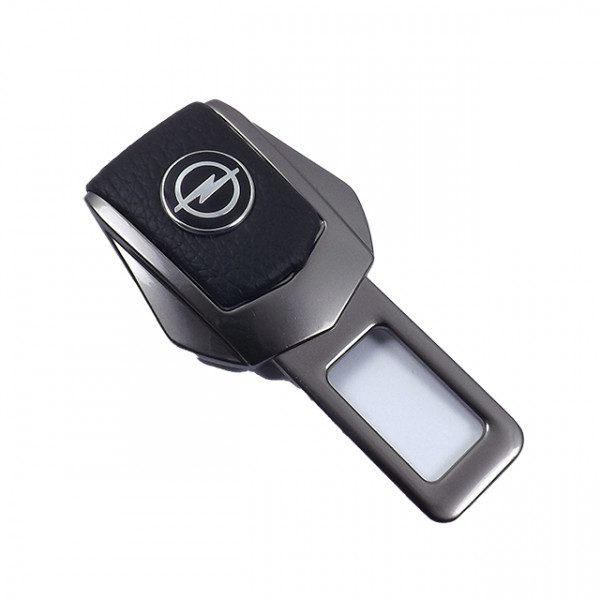 Заглушка ременя безпеки метал "Opel" (1шт) цинк.сплав + шкіра (тип №2) ГРАФІТ